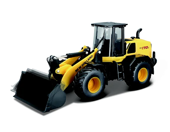 A Miniatura de Pá Carregadeira New Holland W170B Escala 1/26 com pneus emborrachados e cabine translúcidadurável e para brincar e colecionar a New Holland que enfrenta trabalhos agrícola, na construção civil ou mineração.
